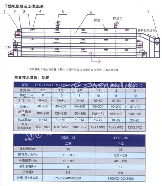 (2)帶干機(jī)不僅供物料干燥,有時還可對物料進(jìn)行焙烤、燒成或熟化處理操作。